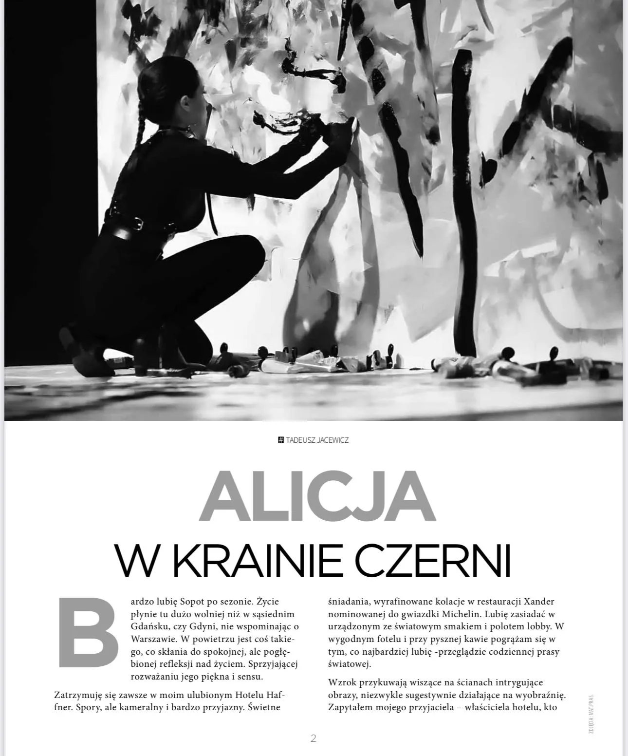 Alicja Domańska is an extraordinary character in the Polish artistic scene. In her art, she boldly draws from varied traditions and trends such as American action painting or European tachisme. I am convinced that the energy in Alicja’s painting moves not only me, but also those who encounter her works in person. To all those who have an opportunity to see Domańska’s works, I wish an excellent artistic experience, and to the author I wish that she constantly develops her passion, since she has an enormous talent.