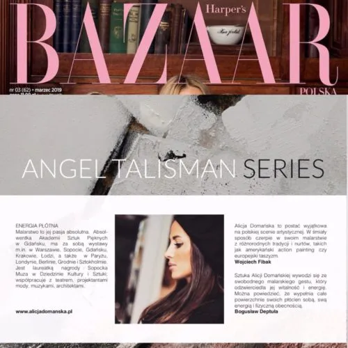 Najnowszy cykl obrazów nosi nazwę „Talizmany” i wypływa z przekonania artystki o tym, że wszystko, co nas otacza, jest energią. Obrazy pełnią rolę nie tyle dekoracyjną, co stanowią estetyczne amulety, które wpływają na nas na podobieństwo mantry. Stanowią portal, w którym spotykają się materia i duchowość, otwierając drzwi prowadzące w głąb podświadomości. Zapraszają do odbycia intelektualnej podróży, której istotą będzie poszerzanie granic własnej imaginacji.